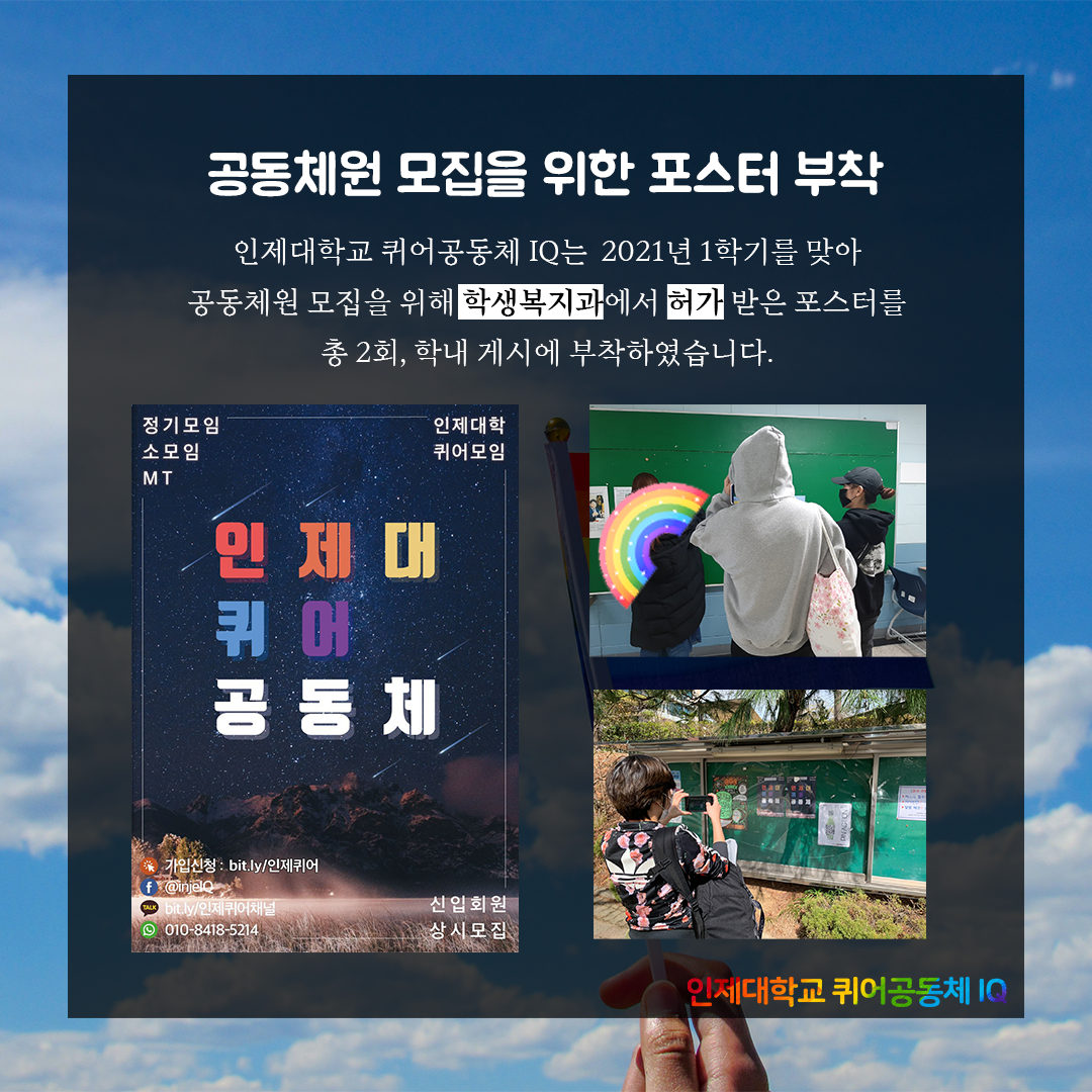 | [성명] 2020.10.07 "우리는 인제퀴어, 혐오에 맞서 거침없이 전진할 것이다." (0) | 2021.07.12 |
